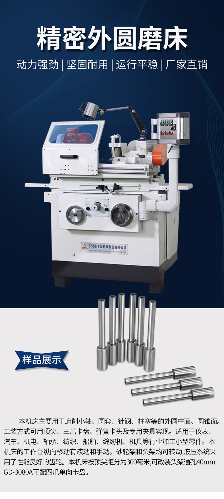 本機(jī)床主要用于磨削小軸、圓套、針閥、柱塞等的圓柱面、圓錐面;